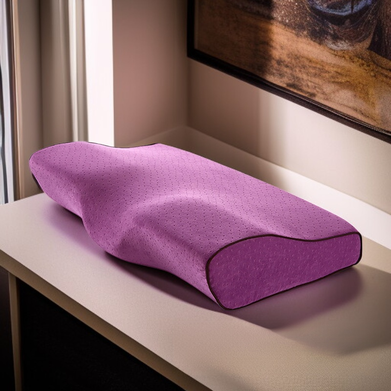 ● Ergonomic butterfly-shaped design provides optimal support for the head, neck, and shoulders, helping to maintain proper spinal alignment during sleep.